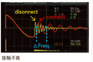 接觸檢查功能利用諧振頻率的差異來檢測是否有連接到待測物。由于當(dāng)沒有碰觸好或是沒有接到待測物做測試時(shí),電容量會比有接待測物時(shí)還要小很多,所以波形諧振的頻率會變高,并可利用此頻率差異做檢測。使用者可依各自的需求對接觸檢查的靈敏度做調(diào)整,可將百分比的界線提高來增加接觸檢查的靈敏度或是將百分比的界線降低來減少接觸檢查的靈敏度。