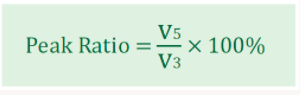 波峰比是用來檢測鉛酸電池芯正負(fù)極板之間的絕緣品質(zhì)。波峰比是波形的第五個(gè)電壓峰值與第三個(gè)電壓峰值的電壓比例,當(dāng)電池芯的等效并聯(lián)電阻(Rp)較小或絕緣的品質(zhì)較差時(shí),因?yàn)槟芰繐p耗的較多、較快,導(dǎo)致第五個(gè)電壓峰值變得更小,所以絕緣品質(zhì)較差的波峰比會比絕緣品質(zhì)較好的波峰比更小。波峰比的大小表現(xiàn)出電池芯正負(fù)極板之間絕緣品質(zhì)的狀態(tài)。