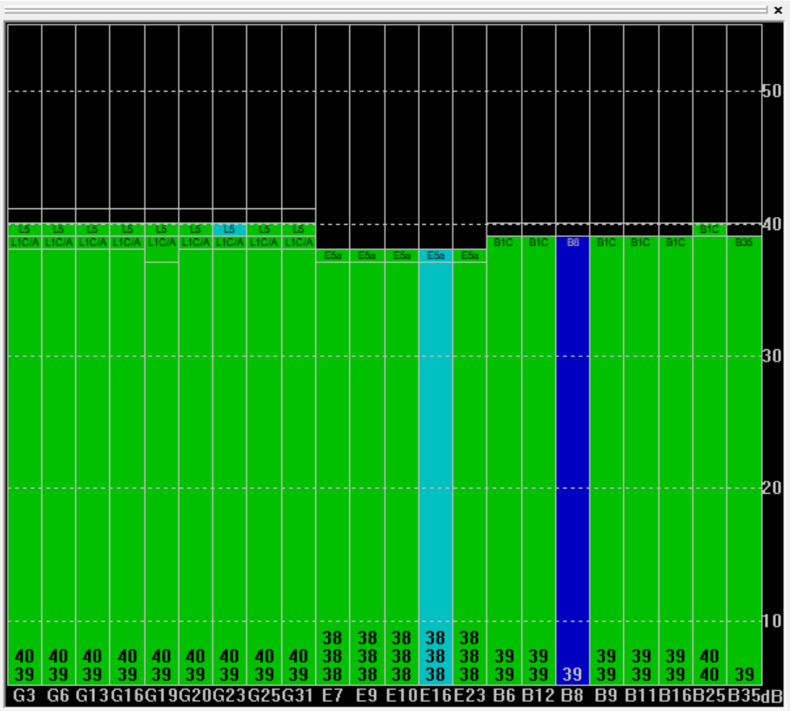 故障排除工具:C/N0 的波動可能預示著衛(wèi)星傳輸或接收端天線,射頻硬件等存在諸如信號阻塞,遮擋,干擾等潛在問題。及時識別并糾正這些異常可確保接收機的持續(xù)穩(wěn)定工作。