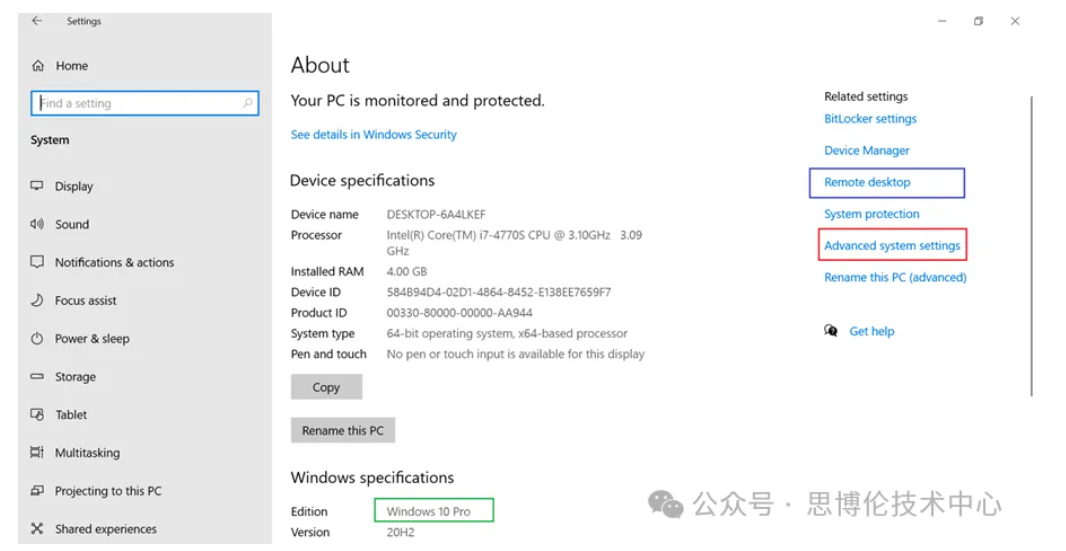 注:從Advanced system setting或Remote desktop處都可進行設(shè)置,效果是一樣的。